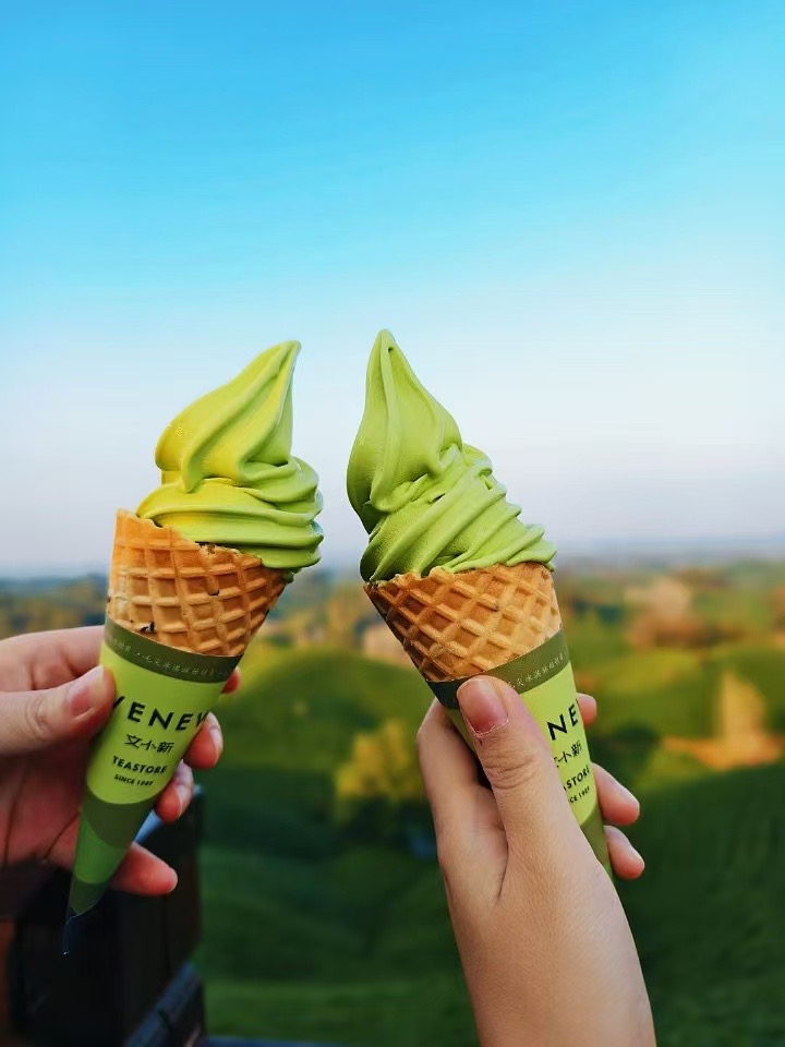 “十一期间,我带着郑州来的朋友去了文新茶村。喝了毛尖奶茶,尝了毛尖冰淇淋,吃了毛尖千层蛋糕……没想到茶还能做成这么多产品,毛尖的‘七十二变’让我一个本地人都觉得特别新奇。”姚家怡说。