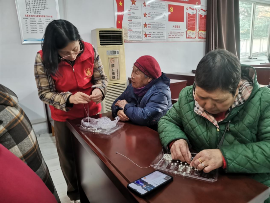 在红星社区活动中,吸引了众多居民的参与,大家在志愿者的指导下,学习了如何挑选合适的珍珠和串珠技巧。现场气氛活跃,欢声笑语不断。居民们不仅享受了手工制作的乐趣,还通过交流和合作增进了邻里间的感情。