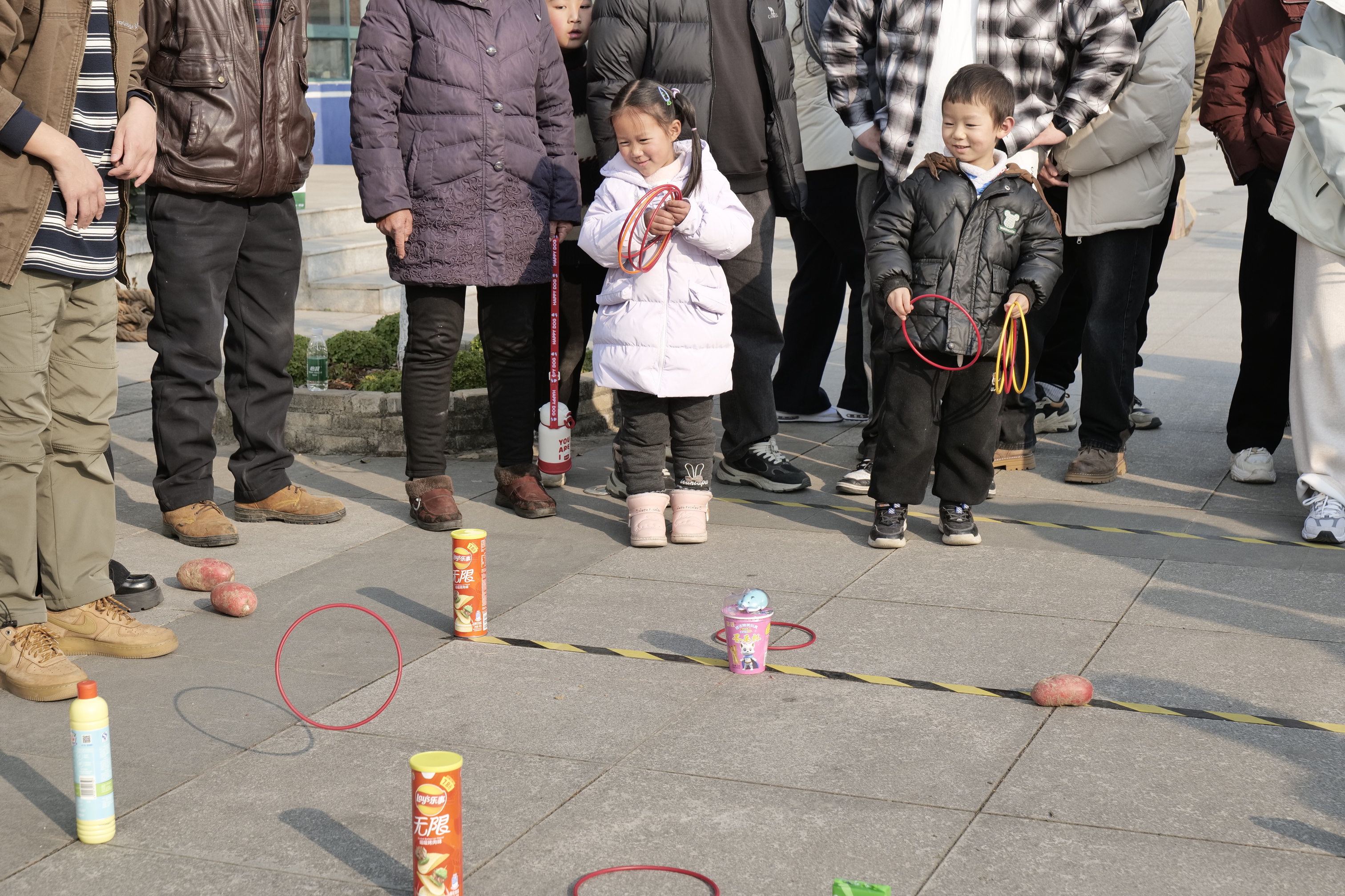 萝卜套圈,精准投掷,眼手并用,充满童真乐趣。