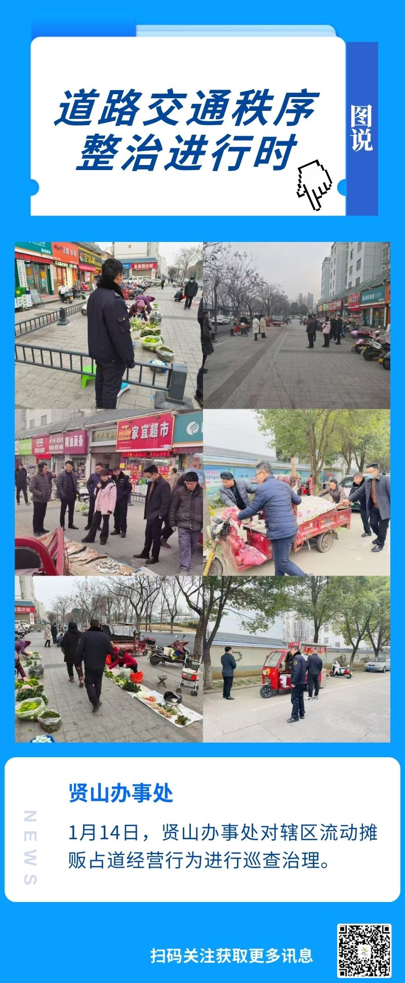 【图说】贤山办事处对辖区流动摊贩占道经营行为进行巡查治理