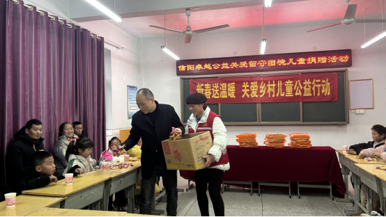 信阳卓越公益还为孩子们准备了丰富的慰问品,包括生活用品、零食大礼包、米面油等各20份。志愿者们将慰问品一一送到孩子们手中。孩子们收下沉甸甸的礼包,也收下了来自政府和社会的一份浓浓爱心。