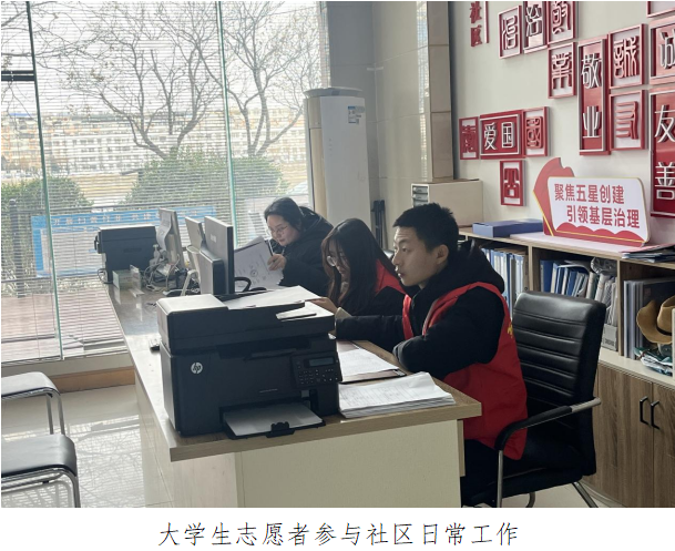 在河南路社区实践中,社区干部鼓励志愿者结合在学校所学的专长,以实际行动践行“奉献友爱、互助进步”的志愿服务精神,在服务居民、助力社区发展中丰富人生经验,增强自身服务意识。