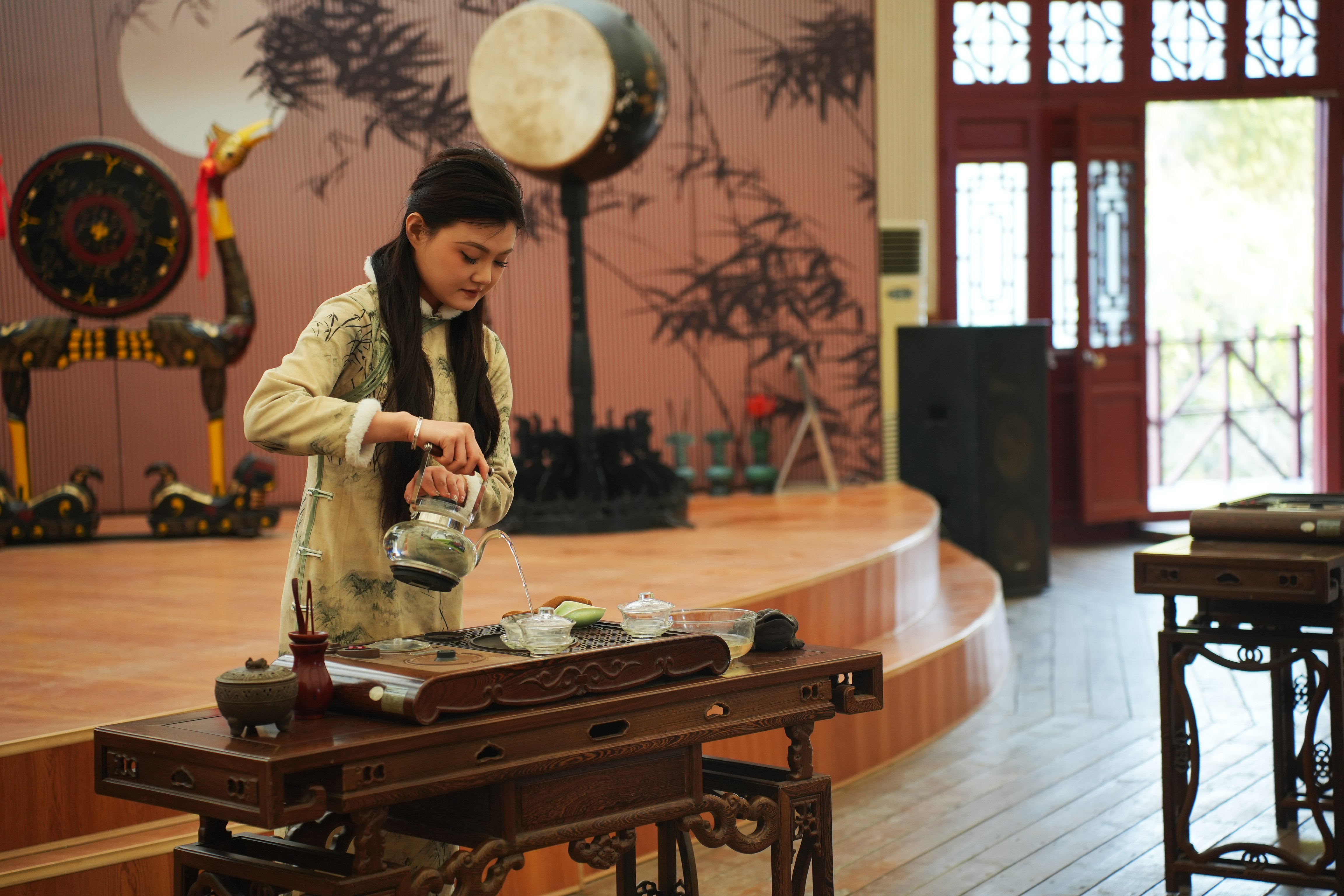 在河南省信阳市浉河区,有一处山水相依的绝美岛屿——南湾湖茶岛。2025年3月9日,游客们前往岛内了解信阳毛尖的前世今生,观看出色的舞蹈、沏茶表演,尽情享受惬意春日时光。(张浩源)