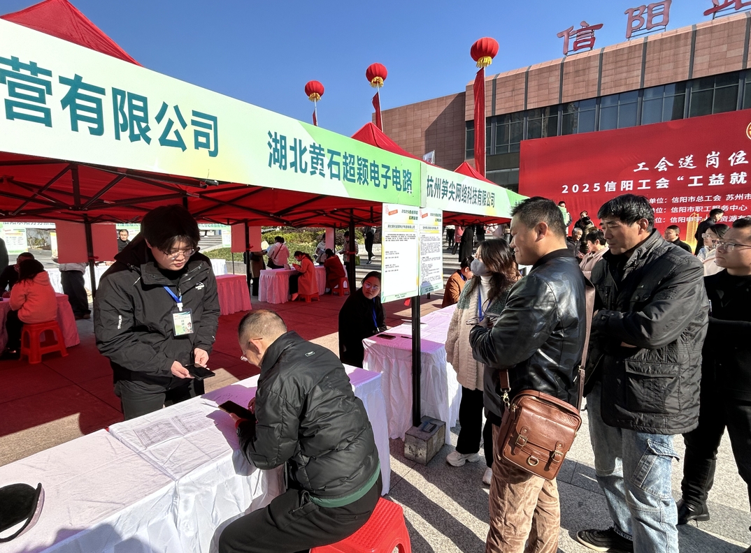 3月18日,2025信阳工会“工益就业・苏信合作”春季招聘会在信阳火车站南广场启幕。