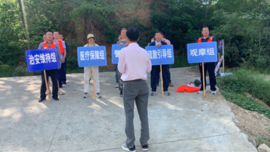 演练过程中,设立了人员转移组、民兵抢险组、治安维持组、后勤保障组、医疗救助组等专项小组,并安排警报响应、医疗救助处理、群众疏散、伤员情况报告等内容,利用应急大喇叭、对讲机、铜锣等方式将信息通知到户、到人,切实保障群众安全。