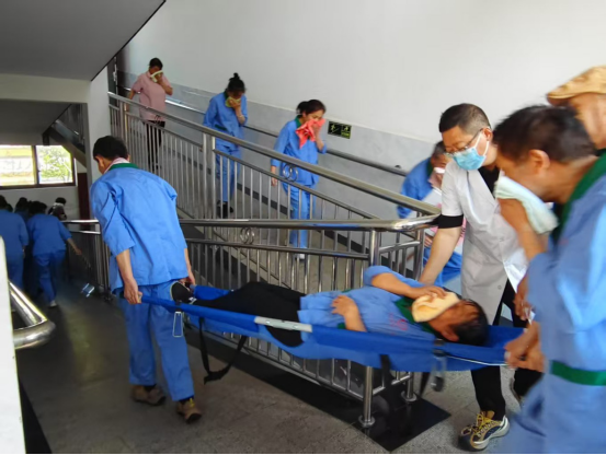 现场设置多个应急处置场景,通讯联络组实时对接消防指挥中心,安全救护组开展心理疏导和基础医疗处置,后勤保障组确保消防设施供电及物资供给。消防救援队抵达后,迅速展开高空水枪灭火作业。在随后开展的灭火器实操培训中,工作人员现场示范"提、拔、握、压"使用要领,参训人员轮番上阵扑灭明火。此次演练通过全要素、全流程实战检验,有效提升了“院方自救、部门联动、专业处置”多位一体应急机制。