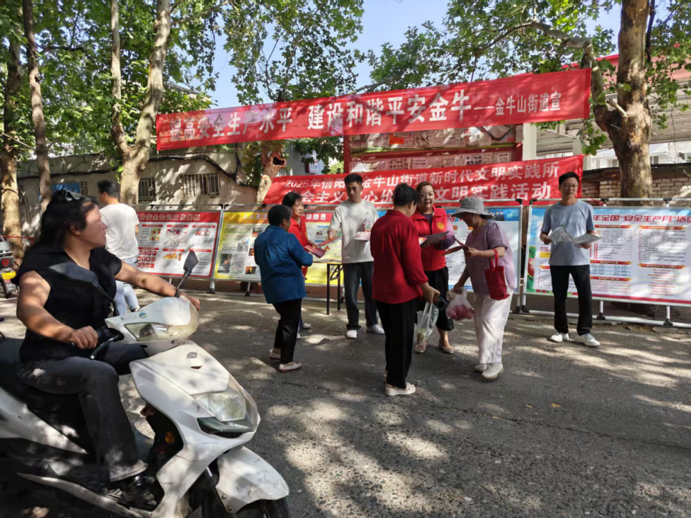 活动现场,该街道平安办联合司法所、便民服务中心等部门,一大早就来到华森社区集市,“增强防灾减灾意识,提高自救互救能力”“提高安全生产水平,建设和谐平安金牛”等标语格外醒目;活动展板以图文并茂的形式,详细展示地震逃生“黄金12秒”、洪水避险“三字诀”、火灾扑救“四步法”等实用知识,吸引过往群众驻足观看;在集市入口,还设置咨询服务台,现场回答群众关心的防灾减灾知识;现场志愿者手拿宣传手册,积极向过往群众发放防灾减灾宣传手册,普及遇到洪水、火灾等灾害时自救、互救的知识。据统计,此次活动,悬挂过街横幅5条、主题展板10块、发放宣传资料1800份,接受群众咨询40余人次。