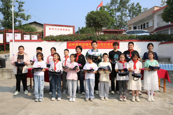 孩子们满怀心意,为老人送上精心准备的礼物。老人们脸上洋溢着幸福笑容,同时,小朋友们也收到了文具礼物。