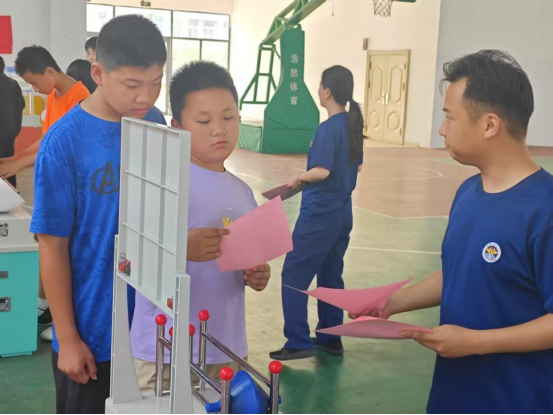 活动现场,市科协带来的科普仪器展品吸引了众多学生驻足参与。从电磁感应装置到力学互动模型,一件件生动有趣的展品将科学原理转化为直观的操作体验。市科协工作人员全程指导,用通俗易懂的语言讲解原理,激发孩子们的好奇心与求知欲,现场洋溢着浓厚的科学氛围。