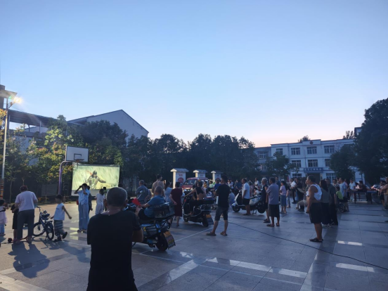 “搞快点儿,我拿了两个小马扎,马上电影就要开始啦”傍晚时分,双河村的村民王大爷一边快步走着,一边热情地招呼邻居。夏夜的东双河镇广场上,一块幕布、一台放映机、一群聚精会神的观众,构成了乡村夜晚最温暖的画面。