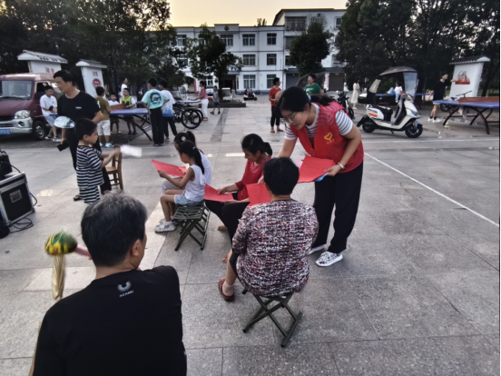 电影开场前,志愿者们也没闲着,他们穿梭在人群中,为村民发放移风易俗、防溺水和防范电信诈骗的宣传页。用通俗易懂的语言讲解重要知识,不仅提升了大家的法律意识和安全意识,也让等待的时光变得更有价值。