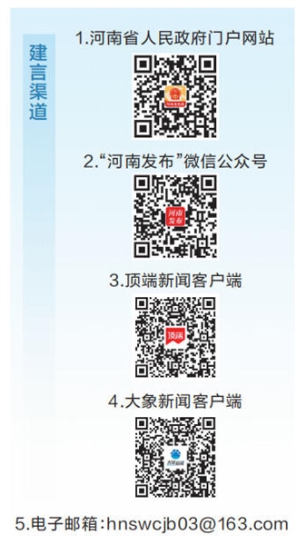 据了解,截至目前,河南日报社、河南广播电视台和各省辖市所属的共约150家新媒体平台发布推送了活动公告,阅读量突破10万人次,通过省政府门户网站、“河南发布”微信公众号、顶端新闻客户端、大象新闻客户端及电子邮箱等渠道,累计征集到各类建议数千条。建议内容涵盖广泛,既涉及事关河南发展全局的大事要事,如融入服务全国统一大市场建设、推动创新驱动发展、建设交通强省等;也有百姓日常关切的关键小事、民生实事,如教育医疗、就业创业、养老托育等,集中体现了人民群众对河南未来5年发展的深切期盼。