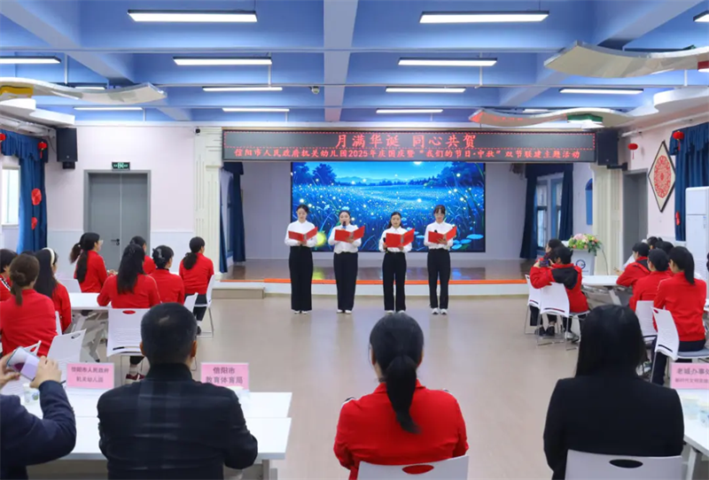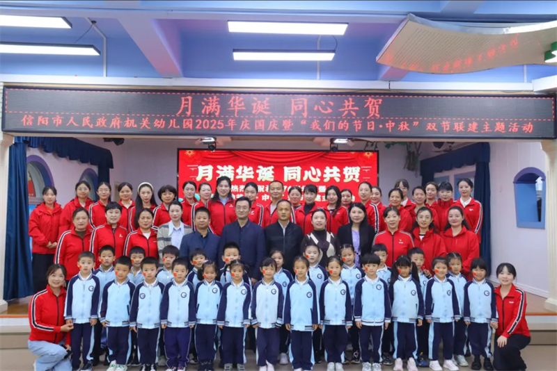 金秋送爽,“双节”同庆。近日,信阳市人民政府机关幼儿园举办“月满华诞·同心共贺”联建活动。少儿开场舞、教师诗朗诵、趣味团队游戏及巧手制花灯等活动的开展,让孩子们在温馨的氛围中感受家国同庆的喜悦与传统文化的魅力。